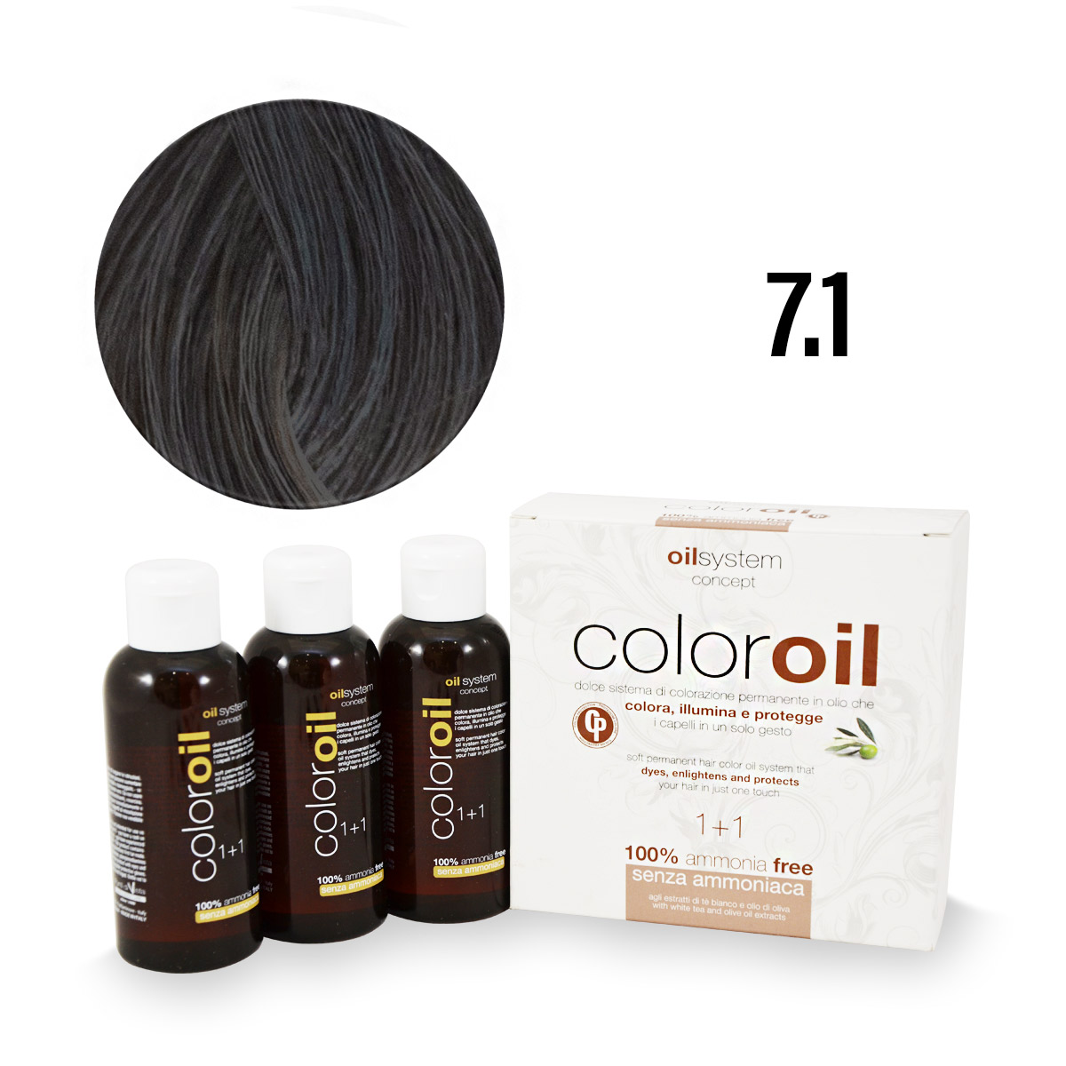 Color Oil di Oil System Concept è un rivoluzionario sistema di colorazione permanente in olio formulata con estratti di tè, olio di oliva che esaltano il colore, rendendolo particolarmente intenso e splendente.